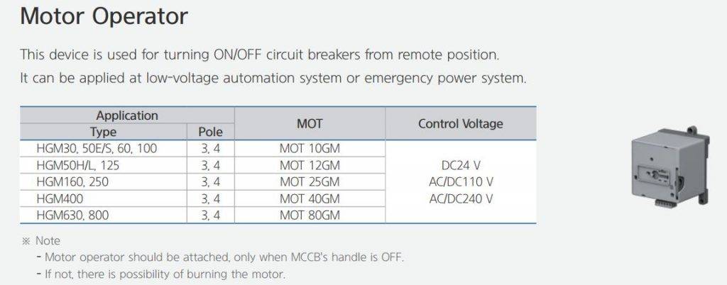 بررسی موتور اپراتور هیوندای برای کلید اتوماتیک حرارتی-مغناطیسی 100 آمپر