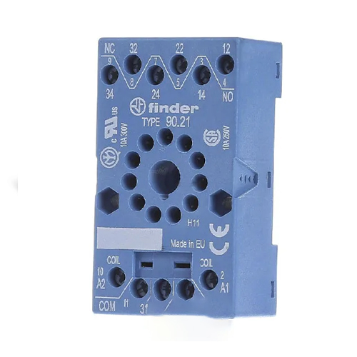 سوکت رله فیندر مدل 90.21 یک پایه استاندارد صنعتی با طراحی 11 پین است که برای نصب سریع و ایمن رلههای سری 60.13، ماژولهای 6013، تایمرهای 9901 و رلههای کمکی مانند 8802 بهکار میرود. این سوکت با ساختار مقاوم و ترمینالهای پیچدار، اتصال مطمئن و پایدار را در تابلوهای برق صنعتی فراهم میکند. طراحی آن مطابق با استانداردهای EN/IEC بوده و قابلیت نصب روی ریل DIN یا پنل را دارد.