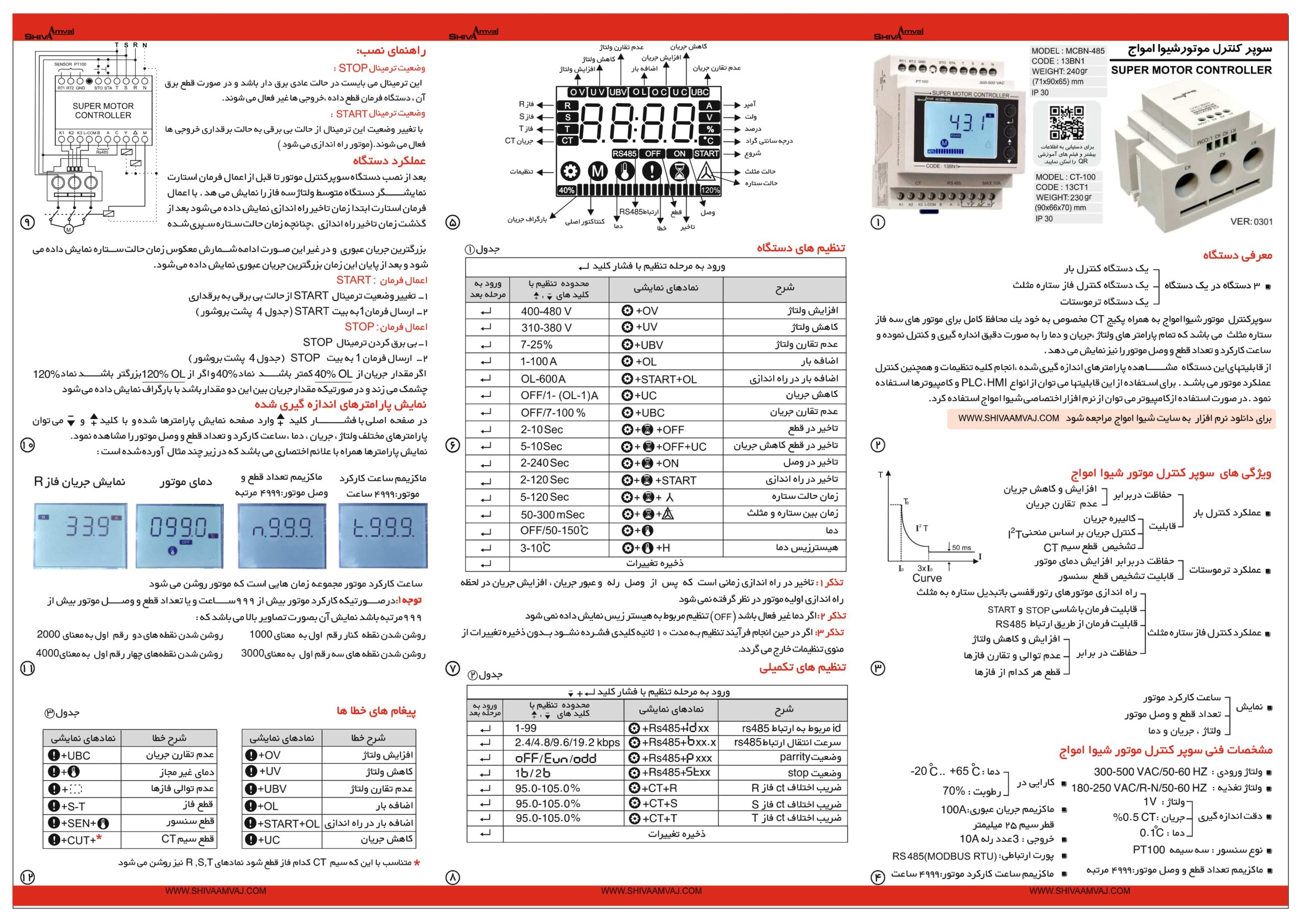 سوپر کنترل موتور شیواامواج به همراه پکیج CT مخصوص به خود یک محافظ کامل برای موتورهای سه فاز ستاره مثلث می باشد که تمام پارامترهای ولتاژ، جریان و دما را به صورت دقیق اندازه گیری و کنترل نموده و ساعت کارکرد و تعداد قطع و وصل موتور را نیز نمایش می دهد.